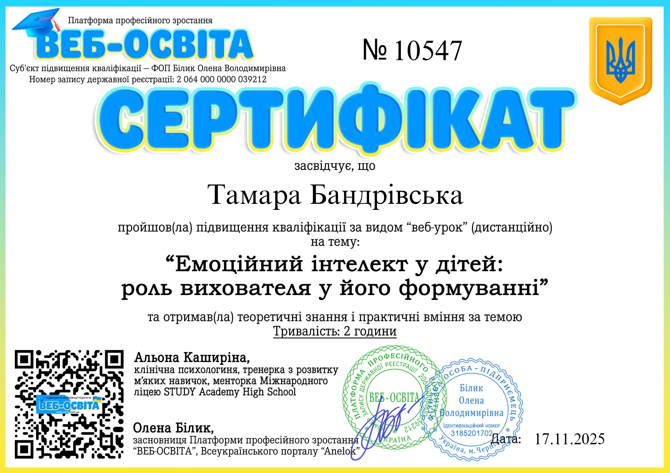 Увага! Видані сертифікати на сайті https://web-osvita.anelok.in.ua/ у період 2020-08.04.2025 є дійсними. Видані сертифікати зі старого домену можете перевірити тут: 2020-2023 , 2024-2025.