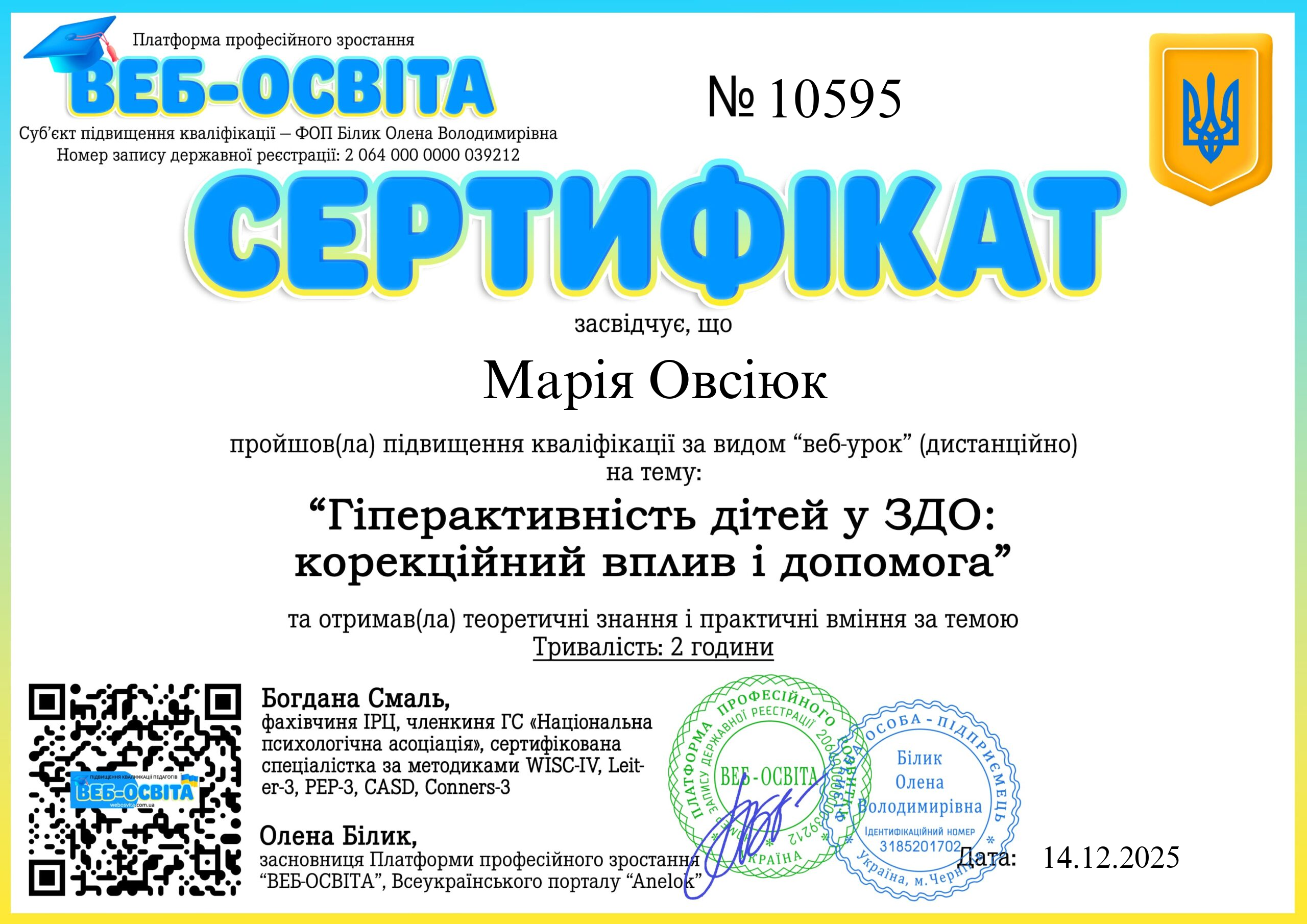 Увага! Видані сертифікати на сайті https://web-osvita.anelok.in.ua/ у період 2020-08.04.2025 є дійсними. Видані сертифікати зі старого домену можете перевірити тут: 2020-2023 , 2024-2025.
